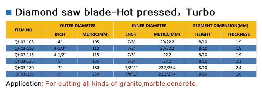 | Diamond Saw Blade-Hot Pressed >> Diamond Saw Blade-Hot Pressed,Turbo | |||