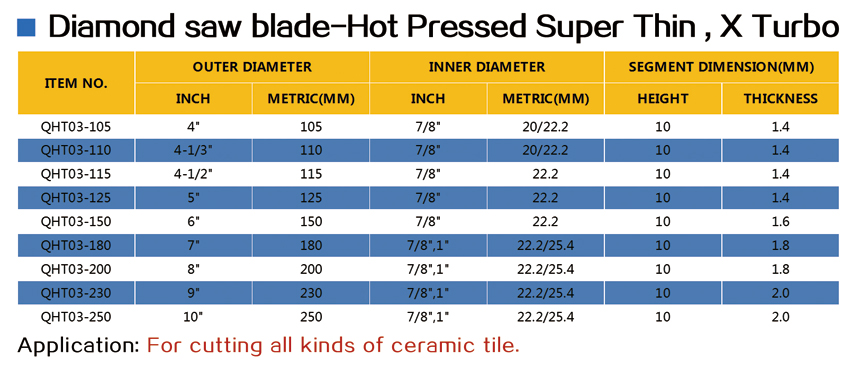 | Diamond Saw Blade-Hot Pressed Super Thin >> Diamond Saw Blade-Hot Pressed Super Thin,X Turbo | |||