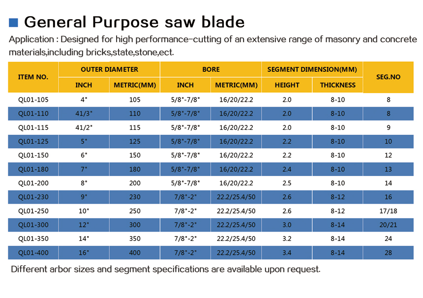 | Diamond Saw Blade-Brazed And Laser Welded >> General Purpose Saw Blade | |||