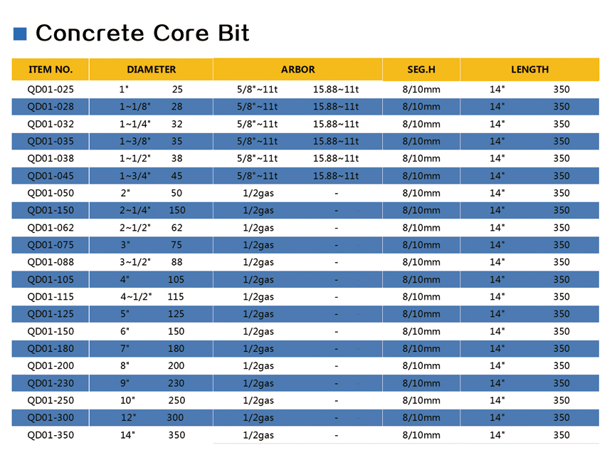 | Diamond Core Drill Bit >> Concrete Core Bit | |||