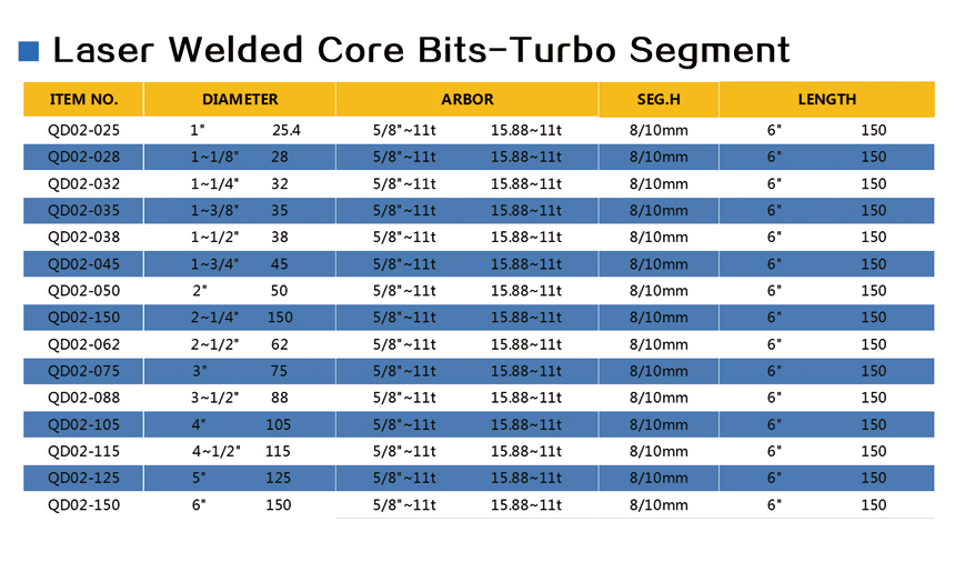 | Diamond Core Drill Bit >> Laser Welded Core Bits-Turbo Segment | |||