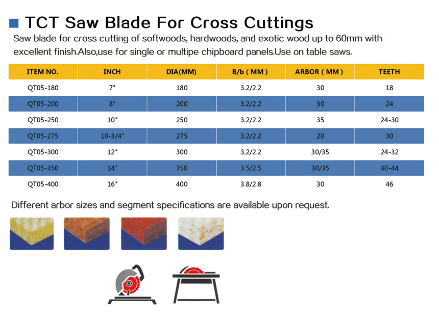 | TCT Saw Blade >> TCT Saw Blade For Cross Cuttings | |||